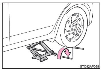 5. Sollevare il veicolo fino a quando il pneumatico risulta leggermente rialzato dal suono.